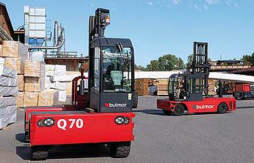 Das überdurchschnittlich belastbare Hubgerüst und das nach innen versetzte rechte Vorderrad des DQ 60 sind das Fundament für außergewöhnliche Belastungen und Einsätze im Außen- und Innenbereich. Bulmor ist der lösungsorientierte Spezialist im Bereich Seitenstapler und Mehrwege-Seitenstapler. Die Qualität, Robustheit und Sicherheit unserer Produkte machen uns zu dem, was wir sind: ein zuverlässiger Premium Partner. Die Maschinen werden auf den Kundenwunsch maßgeschneidert von Bulmor in der oberösterreichischen Zentrale konstruiert und produziert. Die Seitenstapler und Mehrwege-Stapler bestechen durch Innovation, großen Kundennutzen, Langlebigkeit und höchste Verfügbarkeit. Sie sind zudem in den unterschiedlichsten Branchen, von Holz über Stahl bis Bau- und Kunststoff, weltweit einsetzbar.